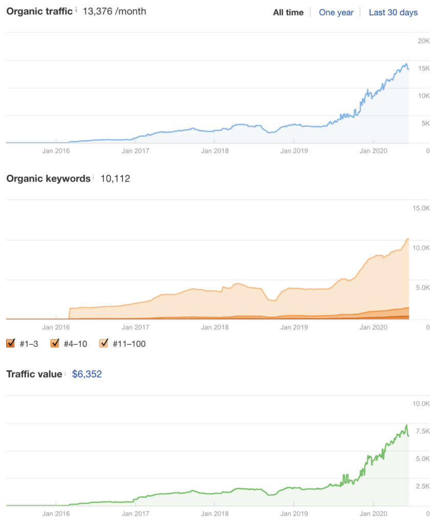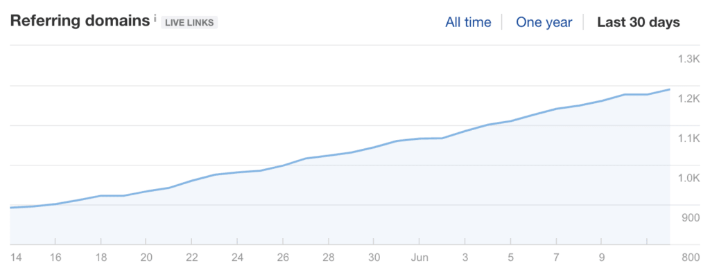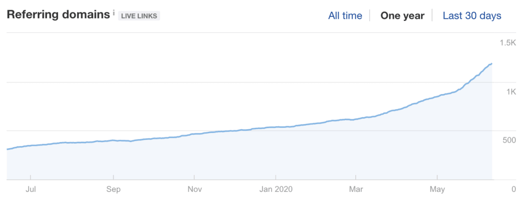 Nedenfor kan du se et eksempel på et domæne, der har fået opbygget en god DR med organisk linkbuilding.