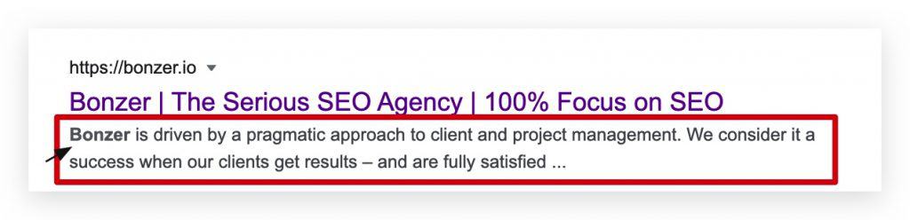 I disse søkeresultatene er det en liten tekst som beskriver hva det konkrete resultatet handler om - dette er en metabeskrivelse.